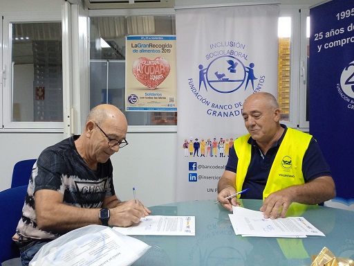 A la firma han asistido, por parte de Jiruma, su presidente D. Miguel Rufino Briones, y en representación de la Fundación Banco de Alimentos de Granada, su presidente D. Manuel Marchal Millán y la Coordinadora del Área de Inserción Laboral Dª. Custo Cortés López. Se ha puesto de manifiesto la necesidad de realizar este tipo de proyectos para contribuir a la integración laboral y social de las personas atendidas en esta asociación que están en posible riesgo de exclusión social, a las que proveemos de alimentos.